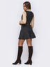 Сарафан приталенного силуэта из костюмной ткани. Модель дополнена широким воланом по низу. Хорошо сочетается с гольфом или блузкой. Модель подойдёт обладательницам типов фигуры «прямоугольник» и «песочные часы».
