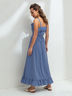 Лаконичный сарафан с нерегулируемыми бретелями. Застёгивается на кнопки по полочке.