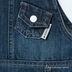 Модель прямого кроя с регулируемыми лямками на комбинезонных застежках. К поясу пришиты петли для ремня и декоративные застежки на кнопки. Застежка на пуговицы по краям изделия. Декоративные кармашки на полочке. Два передних кармана, имитация переднего кармана на молнии, имитации карманов на кнопке сзади. Декоративная потертость, блестки и стразы на подоле.