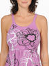 Сарафан трикотажный. На нерегулируемых бретелях. Отрезной лиф и спинка. Спинка посажена на многорядную резинку. Юбка-клеш. Два боковых кармана.