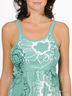 Сарафан трикотажный. На нерегулируемых бретелях. Отрезной лиф и спинка. Спинка посажена на многорядную резинку. Юбка-клеш. Два боковых кармана.