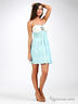 Летний сарафан нежного голубого цвета из шелковистого жаккардового материала. Тонкие регулируемые бретельки. Хлопковый белый лиф, украшен деревянным кольцом, завязывается на спине. Талия посажена на многорядную резинку.