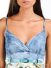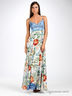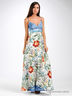 Длинный сарафан из лоснящегося шелковистого материала. Отрезной лиф из легкого денима. Тонкие регулируемые бретельки. Втачной пояс, есть шлевки для ремня. Лакированный пояс с металлической пряжкой.