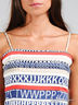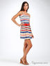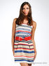 Приталенный летний сарафан с ярким оригинальным принтом. Тонкие регулируемые бретельки. Расклешенная юбка в поперечную полоску. Застегивается на молнию в боковом шве. В комплект входит широкий пояс-резинка с крупным лакированным бантом, застегивается на штыри.