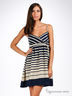 Летний сарафан морской тематики в полоску из шелковистой искусственной ткани.