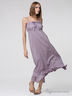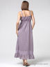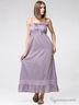 Летний длинный сарафан слегка расклешенного кроя. Выполнен из гладкого, приятного на ощупь материала. На тонких бретельках, отрезной топ, полочка украшена тесьмой в тон изделию, завышенная талия. Низ украшен воланами.