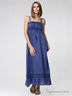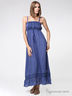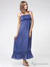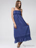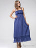 Летний длинный сарафан слегка расклешенного кроя. Выполнен из гладкого, приятного на ощупь материала. На тонких бретельках, отрезной топ, полочка украшена тесьмой в тон изделию, завышенная талия. Низ украшен воланами.