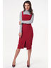 • Особенности: Сарафан прилегающего силуэта из плотной костюмной ткани. Детали: широкие бретели, квадратный вырез, вытачки, шов по переду переходящий в разрез по низу.
