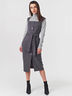 Сарафан из плотной костюмной ткани прилегающего силуэта. Детали: широкие бретели, планка с декоративными пуговицами, вертикальные рельефы по лифу, пояс в комплекте.
