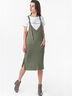 Удлиненный вязаный сарафан вполнен фактурной вязкой из смесовой пряжи с содержанием шерсти и хлопка. Сарафан имеет V- образные верезы по спинке и полочке и один боковой разрез (справа). На полочке изделия имеются 2 накладных кармана. Бретели сарафана регулируются узлом. Длина изделия по спинке 88 см (44, 48 р), длина бретелей 12-17 см.