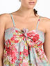 Романтичный легкий сарафан слегка расклешенного силуэта с женственным цветочным принтом. Тонкие регулируемые бретельки. Лиф - многорядная резинка, завязывается спереди на декоративный бант.