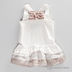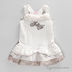 Расклешенная модель на лямках. Изделие украшено множеством оборок и рюшами. По верхней линии юбки к сарафану пришиты белые пластиковые бабочки. Такие же бабочки пришиты к декоративной нашивке, расположенной на полочке.