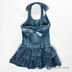 Модель с расклешенной юбкой. Лямка на шее. Застежка на кнопках. К поясу пришиты шлевки. Множество оборок. Брошь - бабочка.