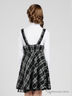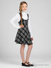 Расклешенная модель на лямках застегивается на скрытую молнию в левом боковом шве. На спинке вставлена резинка. Атласный подклад с сеткой.