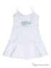 Сарафан, как правило, является фаворитом маленьких модниц. А если он к тому же с объемными воланами и стильным переливающимся декором, выбор в его пользу просто очевиден. Декоративный элемент- рыбка создана в технике принта с нанесенными на него прозрачными пайетками.