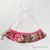 Платье для девочки. Расклешенное платье на тонких бретельках. Топ из многорядной резинки. Линия низа оформлена широкой оборкой с цветным принтом. В край платья вшита завязка.
