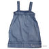 Хлопковый сарафан из лёгкой джинсы свободного покроя на толстых бретельках, регулирующихся по длине и молнией в боковом шве. В районе груди украшен оригинальной горизонтальной прострочкой . Есть прорезные карманы в районе бёдер. Сарафан можно сочетать с любой футболкой из гардероба.