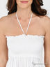 Детали: отрезной лиф на многорядной резинке; завязки через шею; декорирован контрастной вышивкой