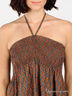 Детали: отрезной лиф на многорядной резинке; завязки через шею; оригинальный принт; пайетки