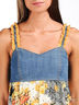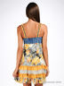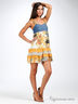 Короткое летнее платье из шифона с цветочным набивным рисунком. Тонкие бретельки украшены оборками. Отрезной лиф из легкой шелковистой джинсы. Застегивается на молнию сбоку. Трикотажная подкладка.