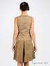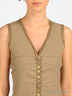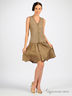 Приталенный сарафан из плотного, фактурного материала. V-образная горловина. Застегивается спереди на планку с пуговицами. Горловина и проймы окантованы сетчатыми полосками. Расклешенная юбка оригинального дизайна из легкого, приятного на ощупь материала.