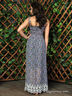 Длинный летний сарафан из шелковистого материала. На тонких регулируемых лямках. Снизу украшен вставками из белого кружева.