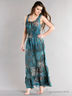 Длинный летний сарафан слегка расклешенного кроя. На широких лямках, на полочке пуговицы, спереди и сзади присборено.