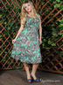 Детали: округлый вырез горловины, лямки, отрезной пояс из многорядной резинки, складки, принты
