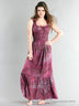 Длинный летний сарафан слегка расклешенного кроя. На широких лямках, на полочке пуговицы, спереди и сзади присборено.