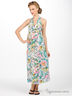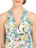 Детали: отрезной лиф с небольшим запахом; завязывается через шею; застегивается на молнию сбоку; декорировано оригинальным принтом