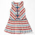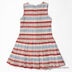 Яркий сарафан для девочки. Круглый вырез, застегивается на молнию сзади, юбка расклешенная. Декорирован оригинальным принтом и пуговицами.