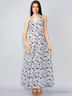 Летнее платье сарафан, приталенное, с пышной юбкой в пол. Юбка трехъярусная. Спина открытая. Бретели лифа завязываются сзади. Центральная часть спинки лифа стянута эластичными нитями. Прекрасное платье контрастной расцветки, выполненное из комфортного материала. Отличный летний вариант. Длина 140 см.