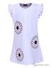 Очаровательный сарафан с короткими рукавами и округлым вырезом горловины. Модель свободного покроя. Спереди изделие декорировано рюшами, принтом и стразами. Отличный вариант для Вашей малышки.