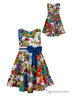 Очаровательный сарафан с короткими рукавами и округлым вырезом горловины. Модель с пышной юбкой выполнена в яркой, контрастной расцветке и украшена множеством декоративных элементов. Отличный вариант для создания праздничного образа.