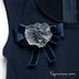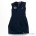 Модель прямого кроя на лямках с расклешенной юбкой в складку типа "тюльпан" застегивается на скрытую молнию на спинке. Полочка украшена логотипом из страз и брошью из лент.