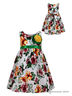 Очаровательный сарафан с короткими рукавами и округлым вырезом горловины. Модель с пышной юбкой выполнена в яркой, контрастной расцветке и украшена множеством декоративных элементов. Отличный вариант для создания праздничного образа.