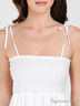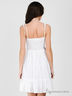 Детали: отрезной лиф на многорядной резинке; тонкие бретели завязываются на плечах; два кармана; низ изделия дополнен воланом; декорирован вышивкой в тон