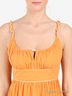 Легкий, воздушный сарафан из нежной, батистовой ткани приталенного силуэта с округлым вырезом горловины, застежкой на молнию. Тонкие эластичные лямки. Завышенная талия подчеркнута втачным поясом, низ изделия дополнен широким воланом.