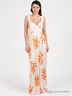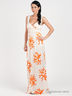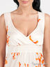Детали: V-образный вырез горловины с запахом, лямки, скрытая застежка на молнию в левом боковом шве, отрезной блестящий пояс, блестящие вставки на лямках, принты