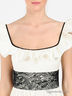 Воздушный сарафан из батистовой ткани приталенного свободного силуэта с округлым вырезом горловины, застежкой на молнию на спине. Тонкие лямки декорированы широкой оборкой, завышенная талия с ажурным втачным поясом, низ изделия дополнен широким воланом.