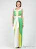 Детали: округлый вырез горловины, вставка по центру, платье с поясом.