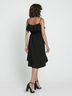 Игривый сарафан выполнен из плательной ткани однотонной расцветки. Модель свободного кроя на тонких бретелях. По вырезу горловины и низу сарафан украшен воланами.