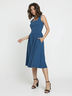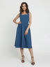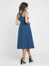 Стильный сарафан выполнен из тонкой костюмной ткани. Клешеная юбка присборена по линии талии, с карманами в боковых швах. Застежка молния расположена с среднем шве спинки. Лямки на пуговицах, что легко позволяет регулировать их длину.