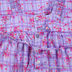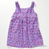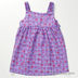 Модель расклешенного кроя. Застежка на четыре пуговицы на полочке. В лямки вшита широкая резинка. В боковые швы вставлены ленты-завязки.
