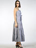Стильный сарафан приталенного кроя на тонких бретелях. Застежка на пуговицы на полочке, в шлевки продет пояс. Отличный вариант для прогулок летним днем.