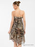 Замечательное платье свободного покроя. Модель выполнена из легкого материала контрастной расцветки. Изделие отлично скроет небольшие недостатки фигуры. Прекрасный вариант для создания модного образа.