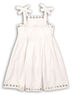 Сарафан для девочки приталенного кроя. Узкие бретели, застежка на молнию на спине. Дополнена модель перфорацией.