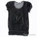 Детали: округлый вырез горловины, короткий рукав-фонарик, сборки от выреза горловины, два передних кармана, низ изделия - присборенная манжета-резинка, полочка декорирована стразами