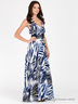 Детали: лиф с запахом; бретели завязываются через шею; широкий втачной пояс со шлевками; застегивается на молнию сзади; оригинальный принт; в комплекте пояс-резинка