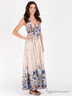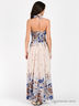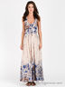 Детали: отрезной лиф на пуговицах, посажен на многорядную резинку сзади; бретели завязываются через шею; застегивается на молнию сбоку; оригинальный принт